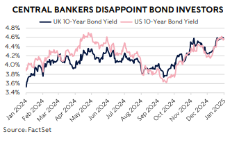 This meant the Bloomberg Global Aggregate bond market index fell to a 1.7% loss for 2024, the third in four years. That sustained poor run is unprecedented in the past 30 years. An especially disappointing result in a year of steadily falling interest rates – you would have expected bonds to do well in such an environment – and they had until the tail end of the year. Instead, bond investors are focused on a future where benchmark interest rates are higher than they would like, rather than enjoying the reduction in rates today.