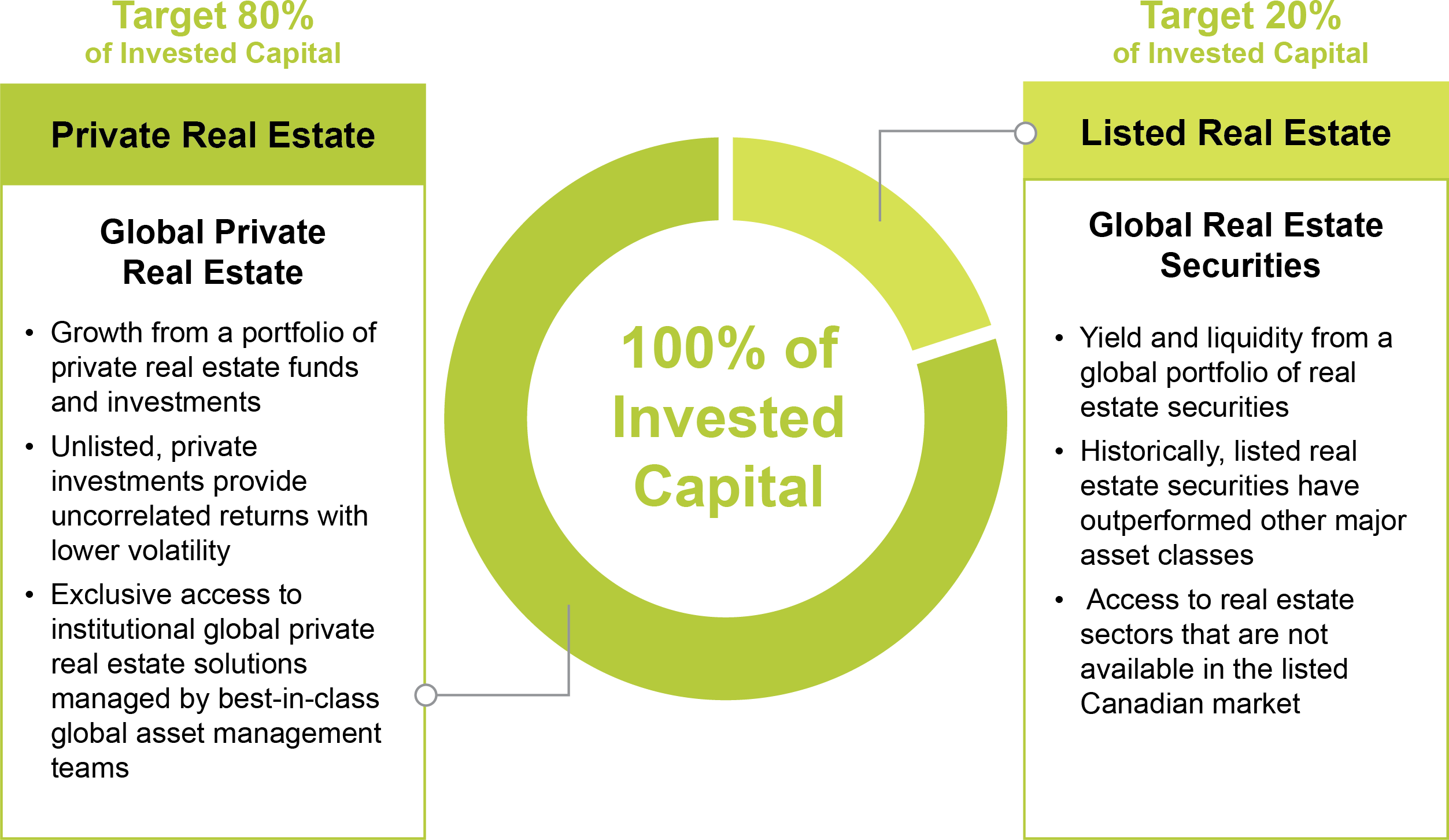 The investment objective of the Starlight Private Global Real Estate Pool is to achieve long-term capital appreciation and regular current income by investing globally in private real estate investments and in public real estate investment trusts (REITS) and equity securities of corporations participating in the residential and commercial real estate sector.