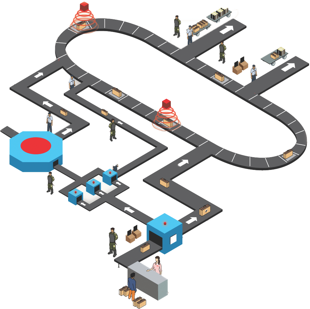 A sophisticated set-up of 35 fully automated detection systems, more than 50 remote operating stations with enhanced imagery and high-tech tomography X-rays for alarm resolution are used by trained security operators. If the bag is not cleared in level-three screening, it goes to an operator, who is trained to analyse the images. These operators accept or reject the bag. If they reject the luggage, it goes to level four, where level-three images are already available. If operators at this level feel there are suspicious objects in the luggage, they call the passengers, and examine the bag in front of them.